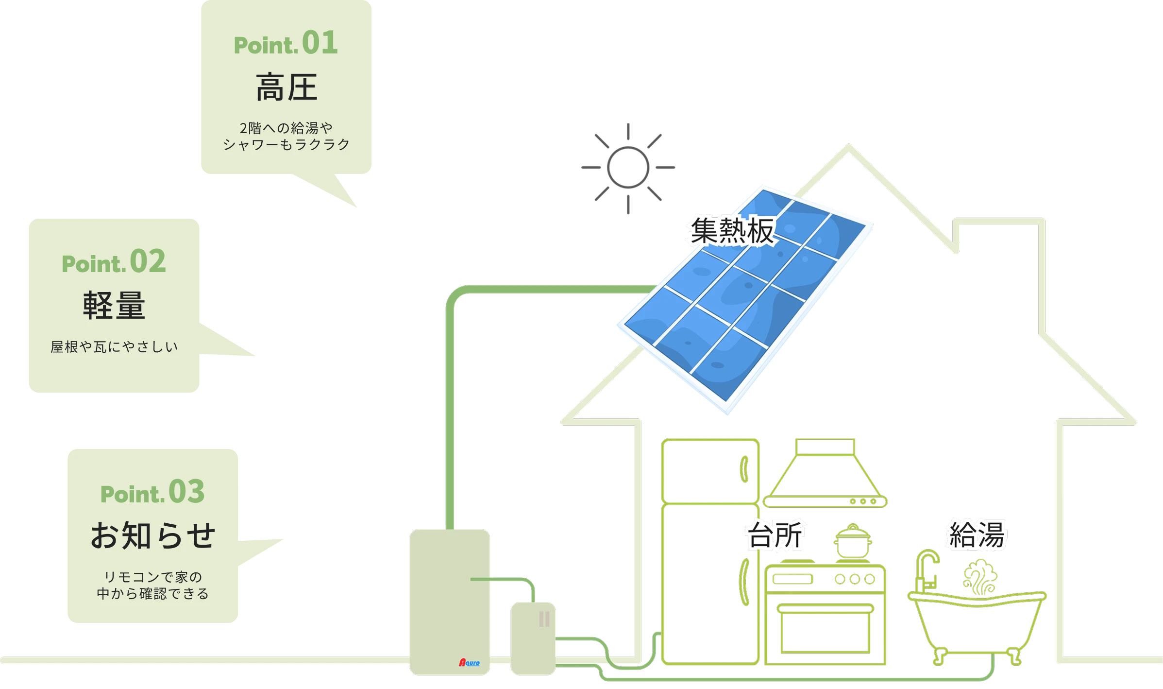 降り注ぐ太陽エネルギーから生まれるお湯